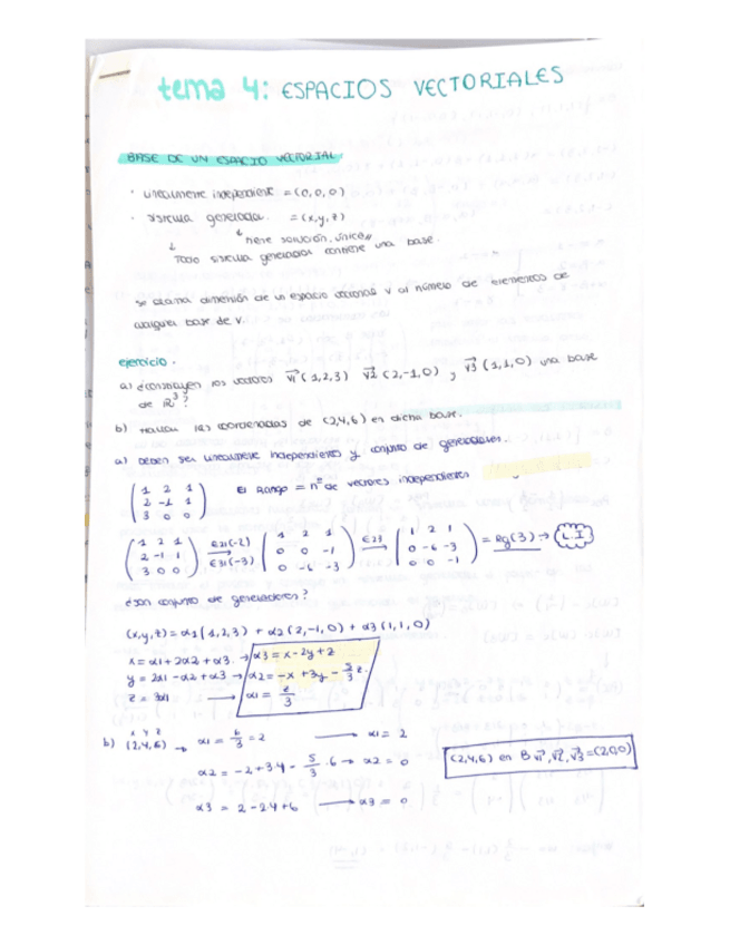 TEMA 4. ESPACIOS VECTORIALES APUNTES DETALLADOS + EJERCICIOS EXPLICATIVOS