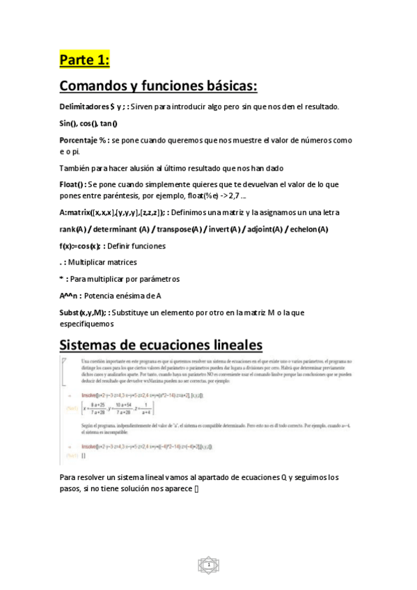 Cuaderno sobre las prácticas de wxMaxima y sus comandos para álgebra.
