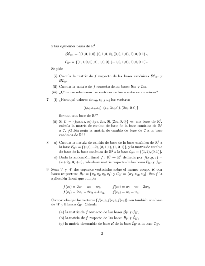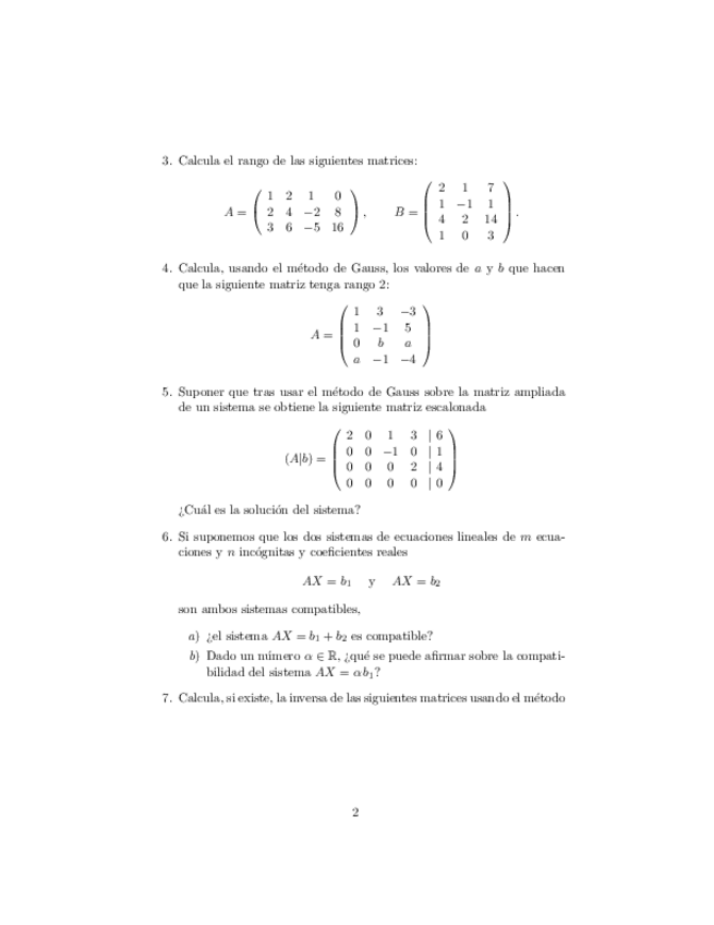 Exámenes y ejercicios de álgebra