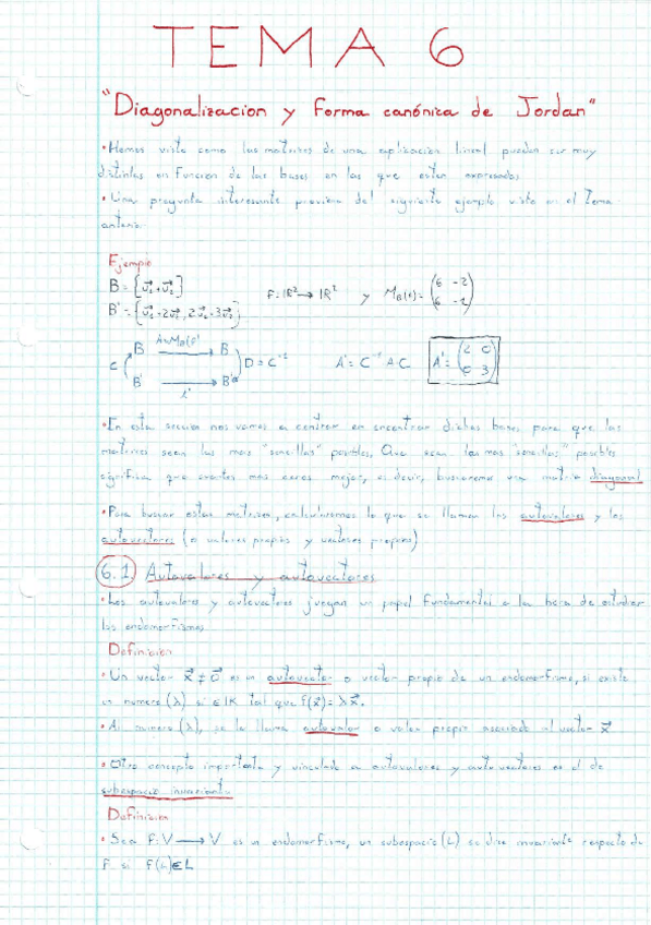 Acabo de suber un documento con todos los apuntes de subespacios vectoriales, diagonalización y forma canónica de Jordan y Espacio Euclídeo