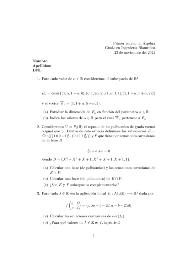 He publicado nuevos examenes de 1º Álgebra: Parcial-2-mayo.pdf