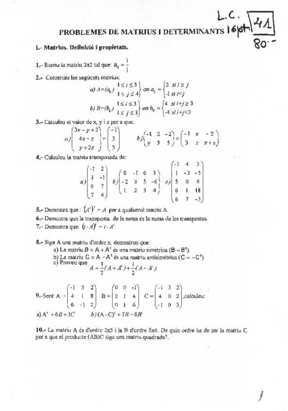 He publicado nuevos ejercicios de 1º Álgebra: ALGEBRAenunciados-de-ejercicios-de-matrices-y-determinantes.pdf