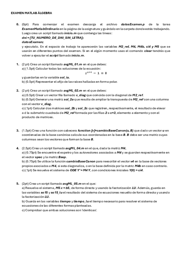 He publicado nuevos examenes de 1º Álgebra: Examen Matlab Ordinario 24/25.pdf.pdf