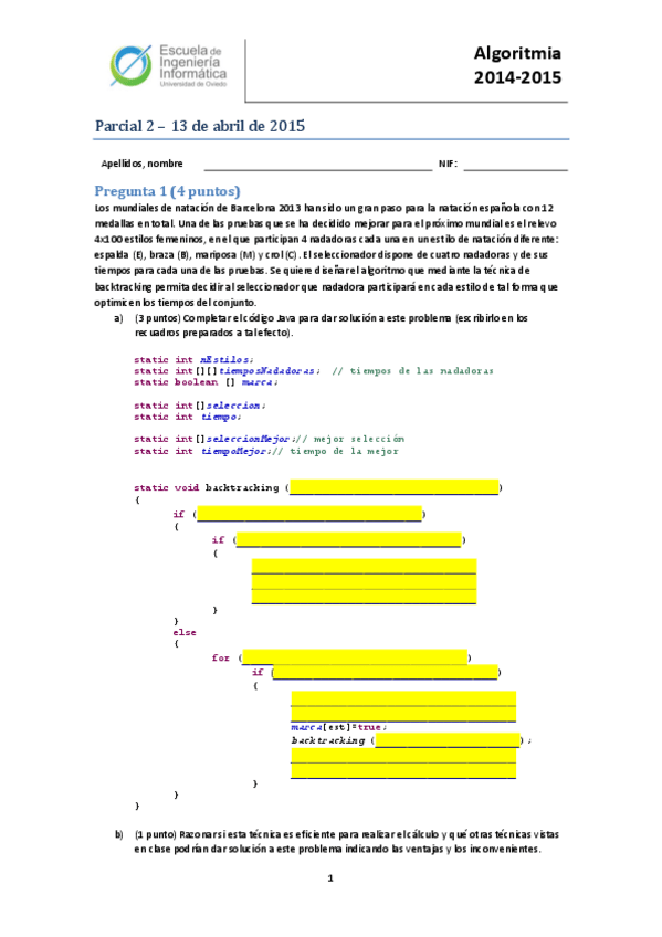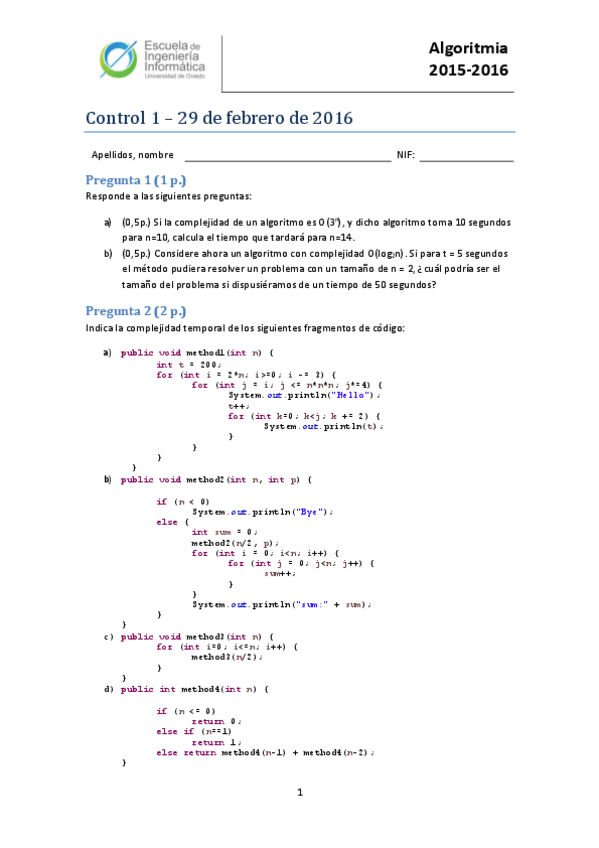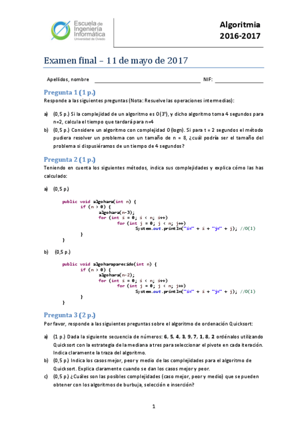 Exámenes Algoritmia