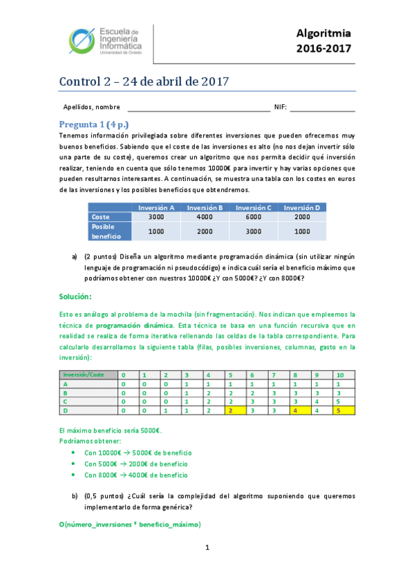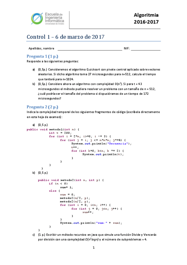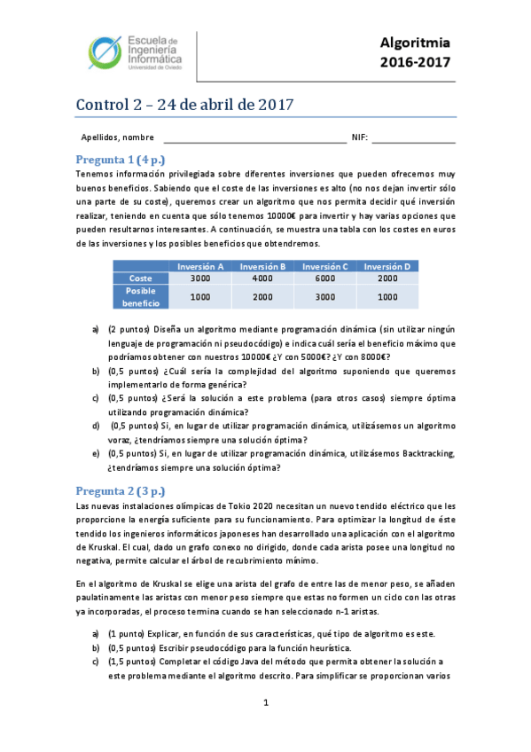 He publicado nuevos examenes de 2º Algoritmia: Examen 2016-2017 Ordinaria Control 2