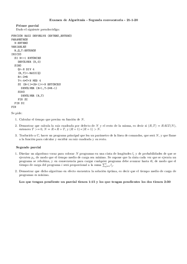 He publicado nuevos examenes de 2º Algoritmia: exaalg20f1.pdf