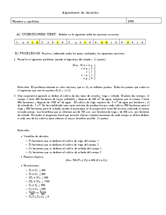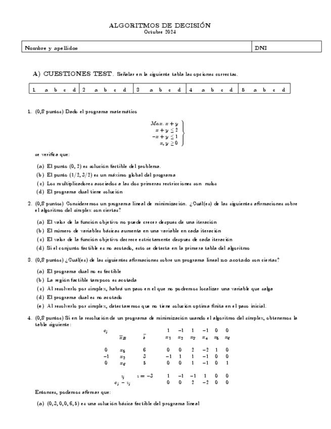 He publicado nuevos examenes de 4º Algoritmos de Decisión: Examen-final2.pdf