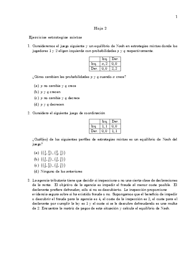 He publicado nuevos ejercicios de 4º Algoritmos de Decisión: Ejercicios-estrategias-mixtas-Solucion-hoja-2.pdf
