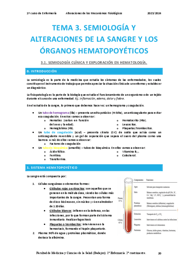 He publicado nuevos apuntes de 1º ALTERACIONES DE MECANISMOS FISIOLÓGICOS: Bloque 2. Semiología de la sangre