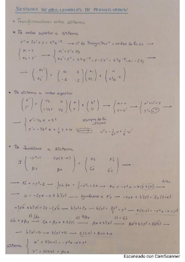 SUPERRESUMEN de la teoría + métodos de resolución para los ejercicios de exámenes de sistemas de edos