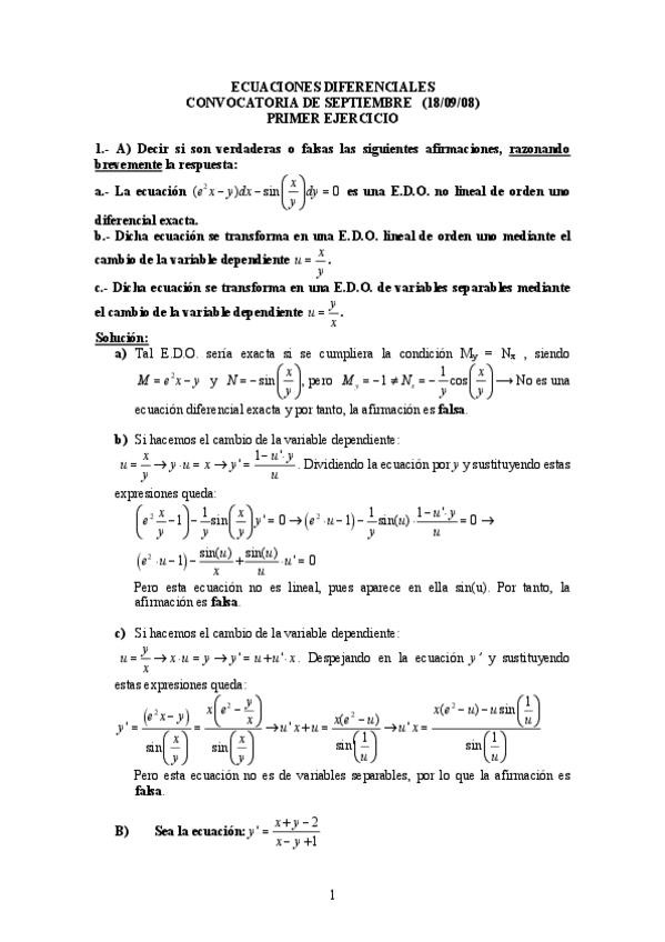 He publicado nuevos examenes de 2º Ampliación de Ecuaciones Diferenciales: Examenes primer parcial