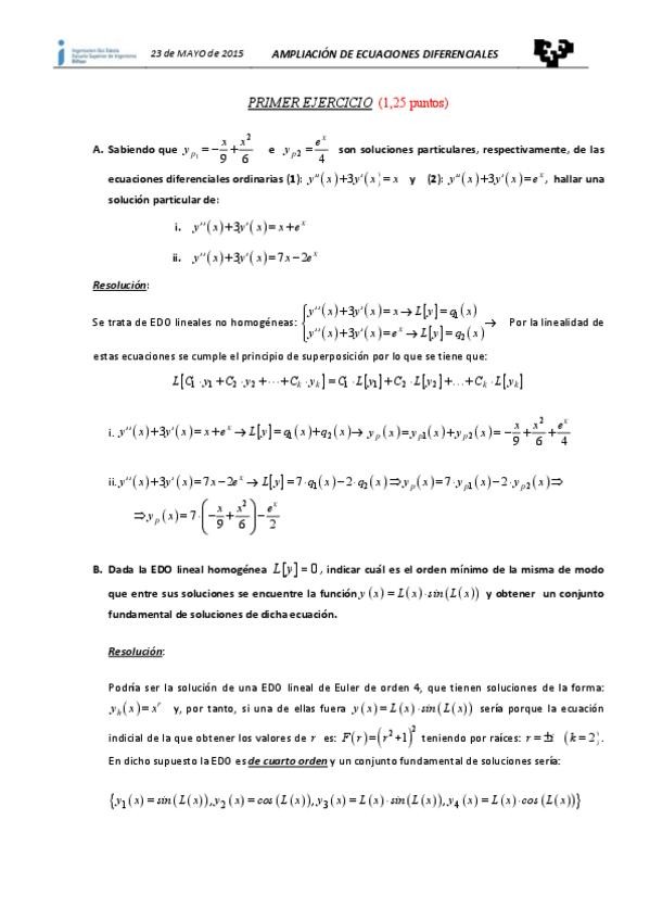 He publicado nuevos examenes de 2º Ampliación de Ecuaciones Diferenciales: Parciales-resueltos.pdf