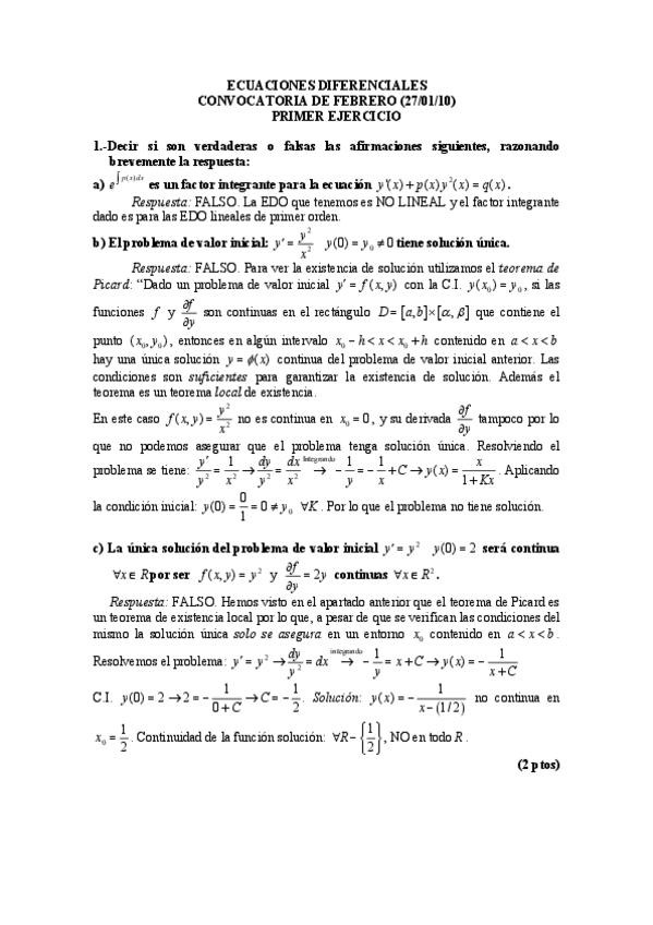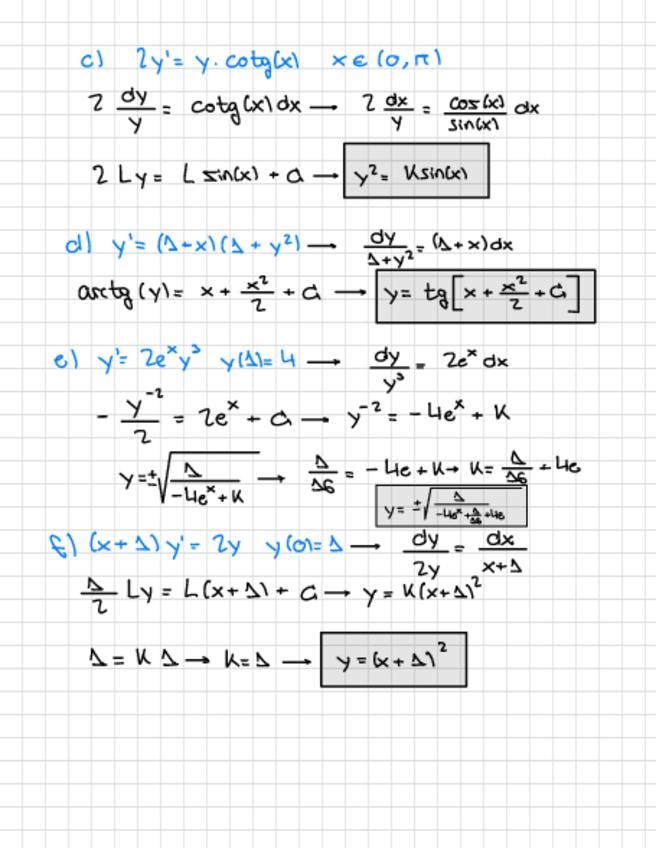 SUPERRESUMEN de la teoría + métodos de resolución para los ejercicios de exámenes de ecuaciones diferenciales ordinarias