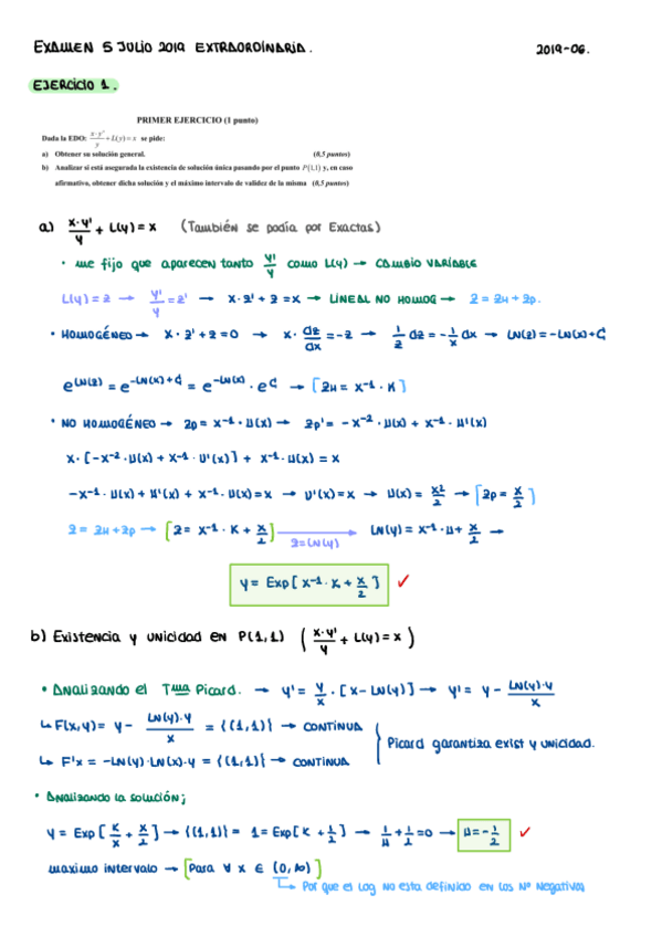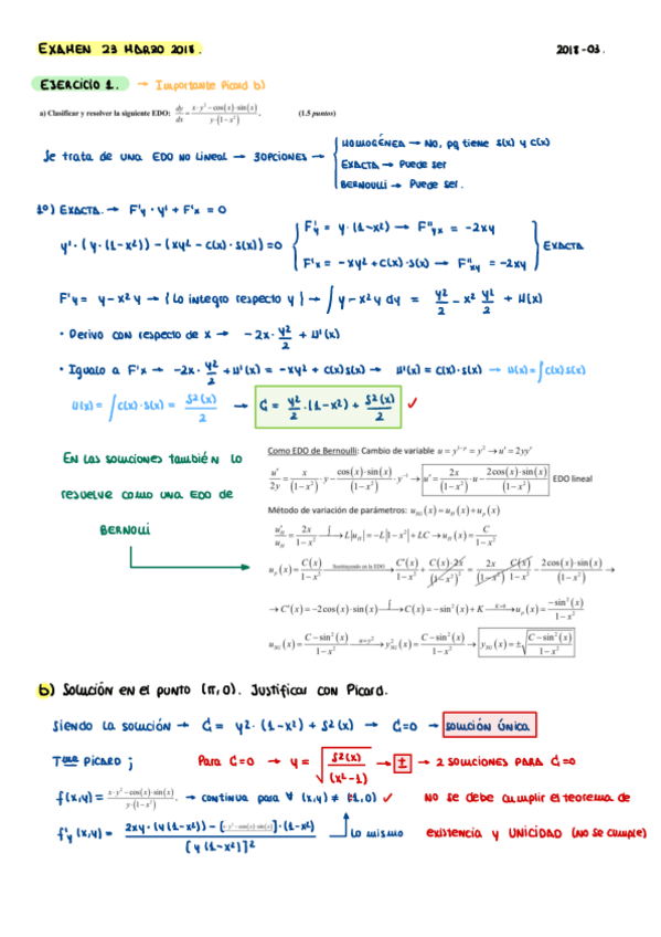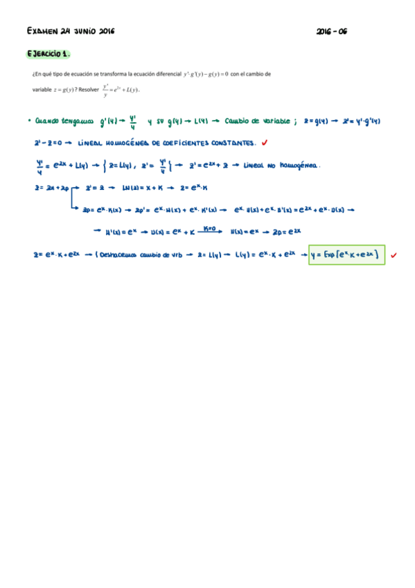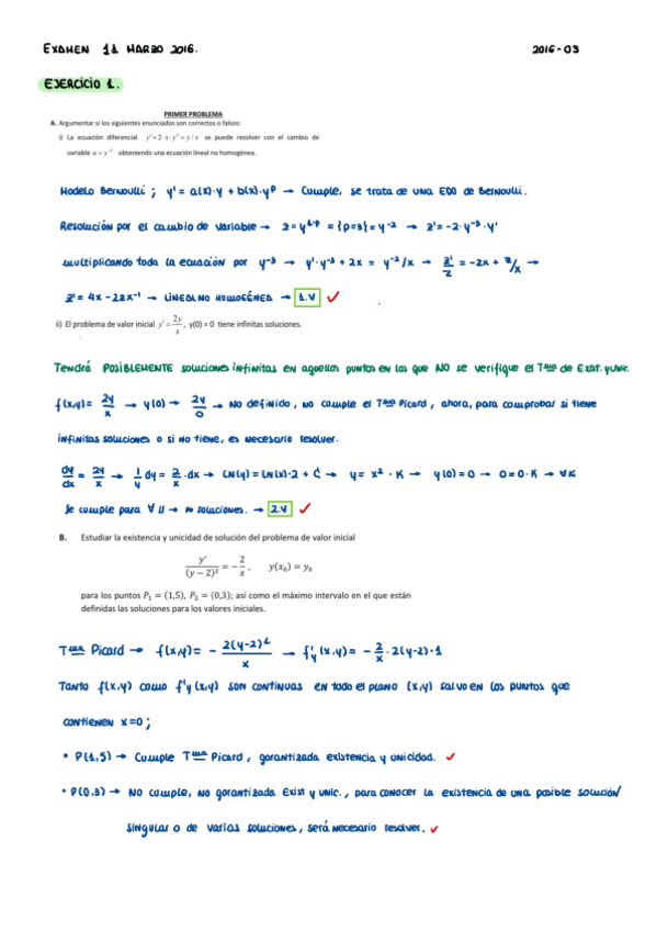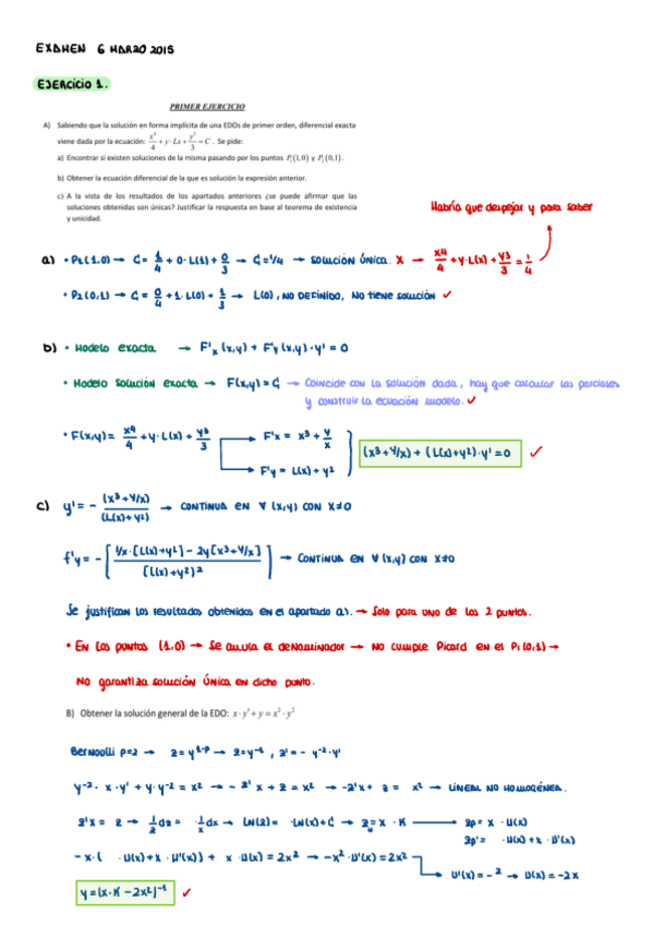 ECUACIONES DIFERENCIALES - EXÁMENES