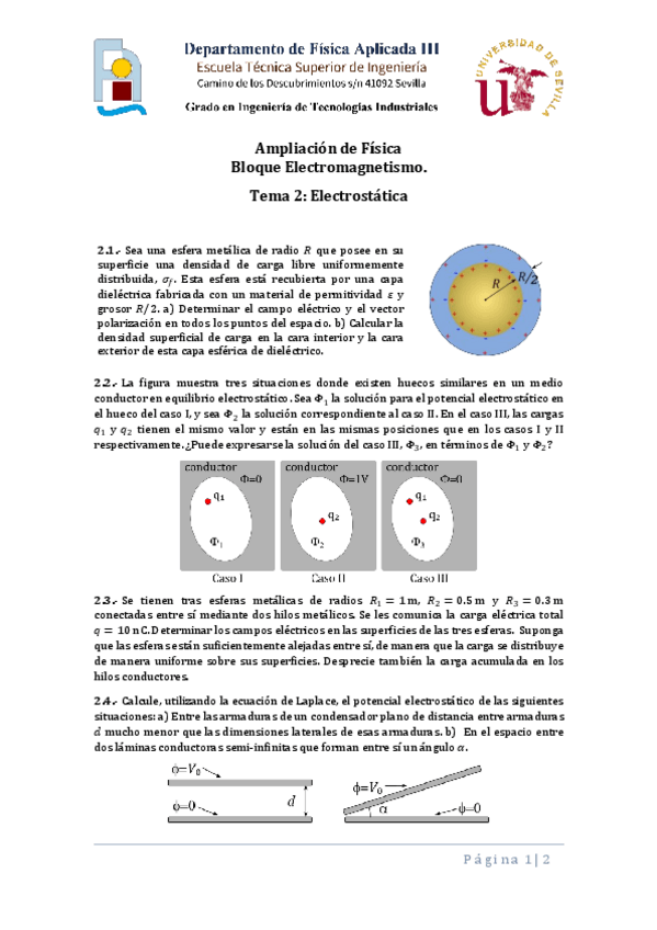 He publicado nuevos ejercicios de 2º Ampliación de Física: Parcial2Tema1.pdf