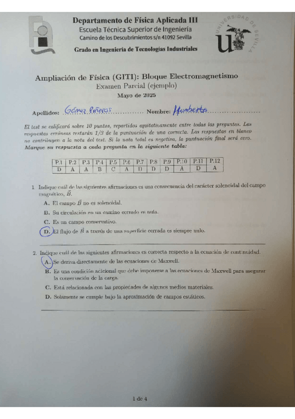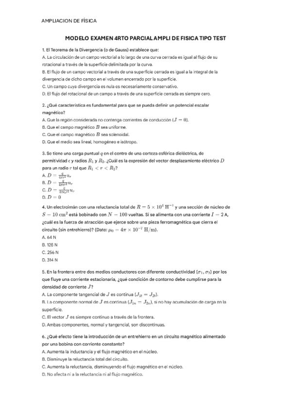 EXAMEN DE EJEMPLO DE JOAQUIN BERNAL RESUELTO, BLOQUE DE MAGNETISMO