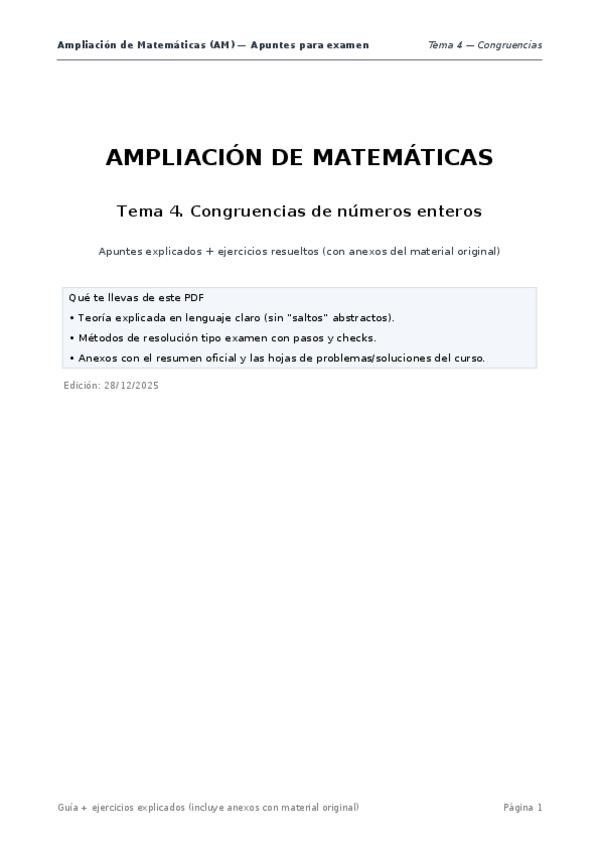 Apuntes de cara al examen sobre el tema de congruencia de enteros