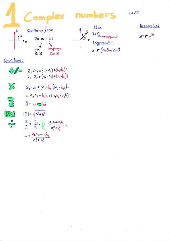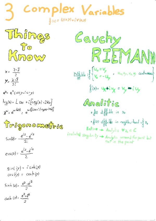 Formulario con todos los contenidos del primer parcial de analisis complejo. Con los metodos y teoremas mas utiles para resolver los ejercicios mas tipicos de examen de este tema.