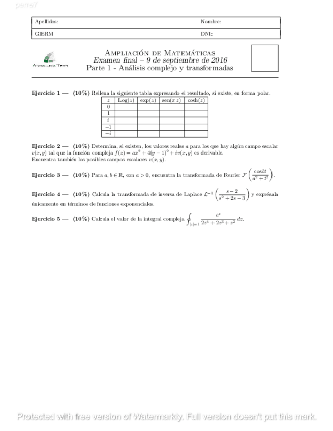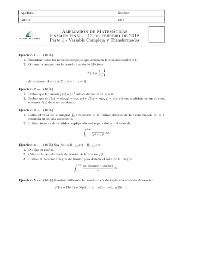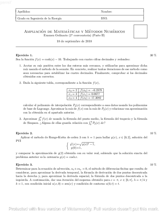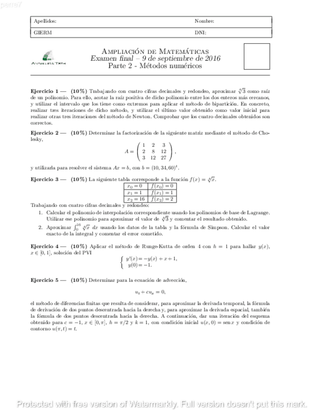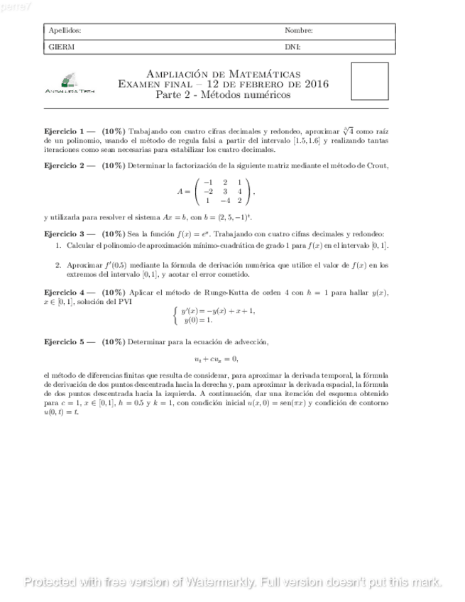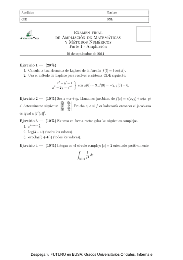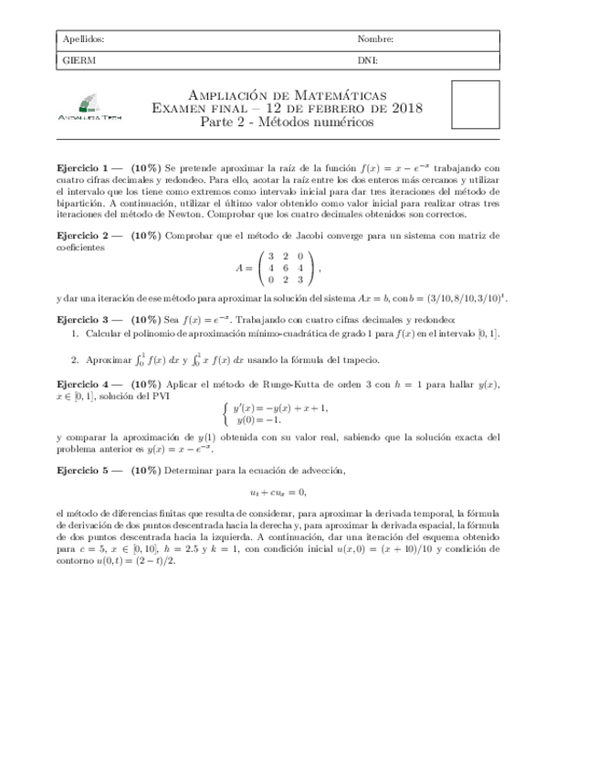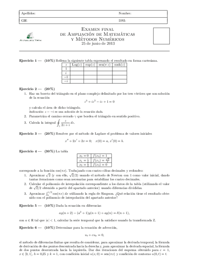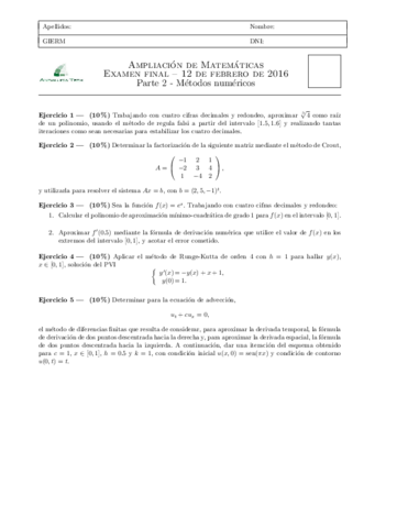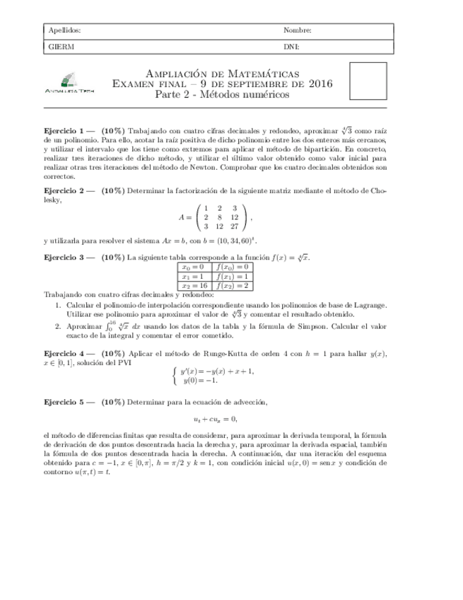 He publicado nuevos apuntes de 2º Ampliación de Matemáticas y Métodos Numéricos: examen itm junio 2016.pdf