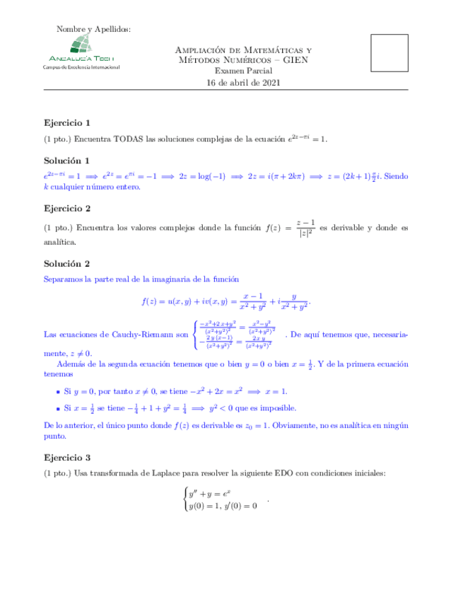 He publicado nuevos examenes de 2º Ampliación de Matemáticas y Métodos Numéricos: parcial1resuelto.pdf
