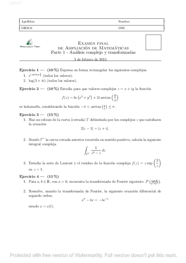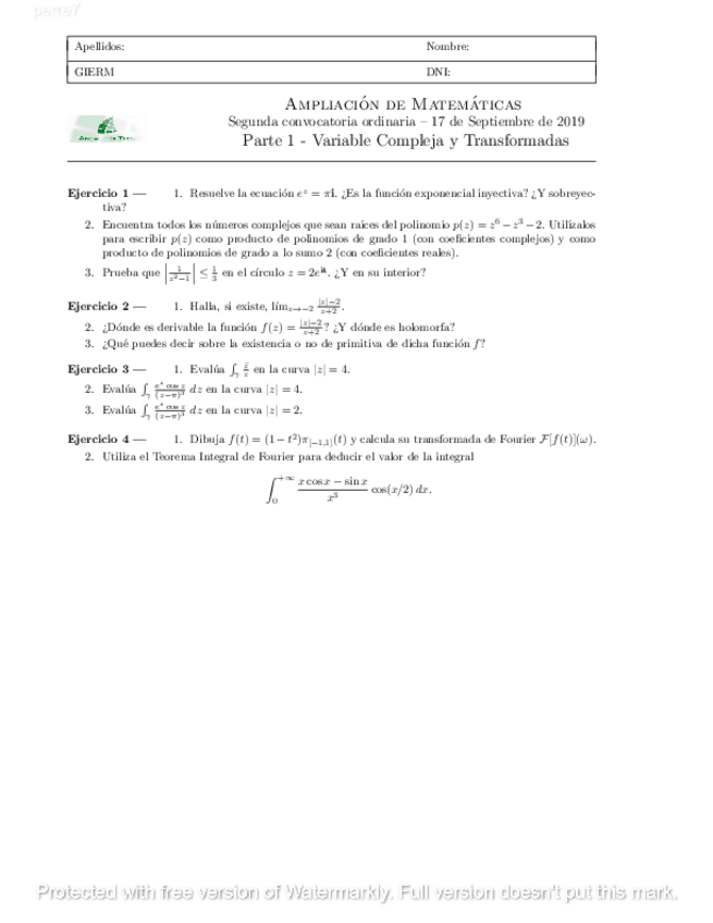 Exámenes Variable Compleja