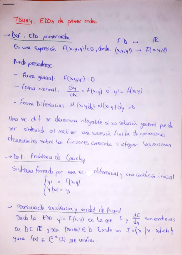 Esquema resumen de los temas 3 y 4 sobre la introducción a las Ecuaciones Diferenciales Ordinarias y las Ecuaciones Diferenciales Ordinarias de primer orden