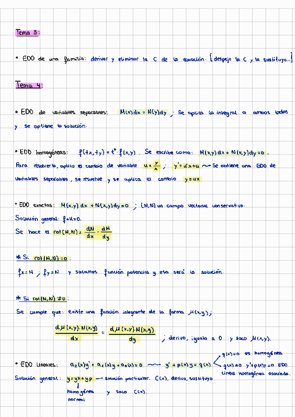 He publicado nuevos apuntes de 2º Ampliación de Matemáticas: Resumen-EDOs.pdf