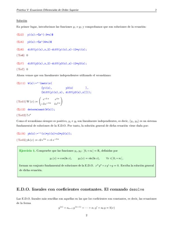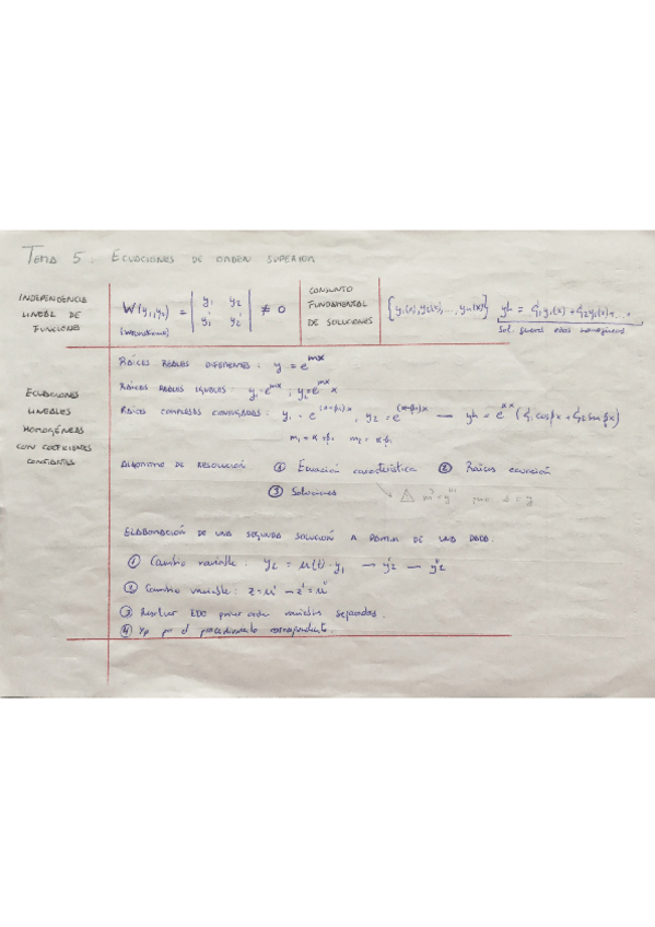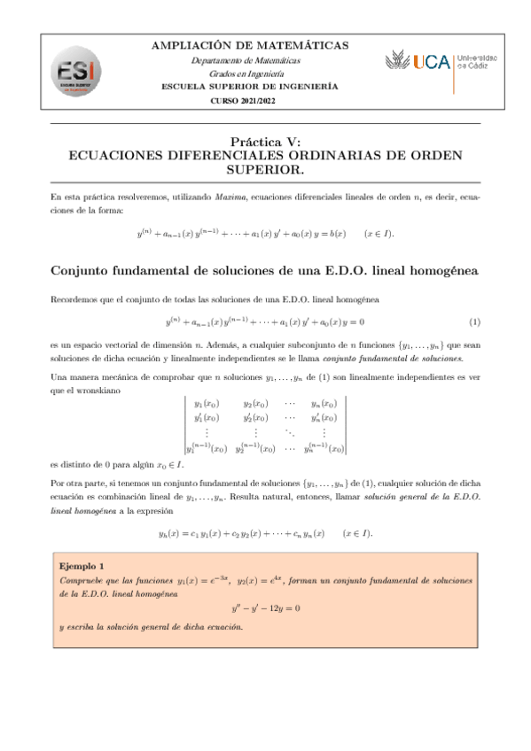 Apuntes Tema 5 EDOS de orden superior con ejercicios de seminarios y ejemplos.