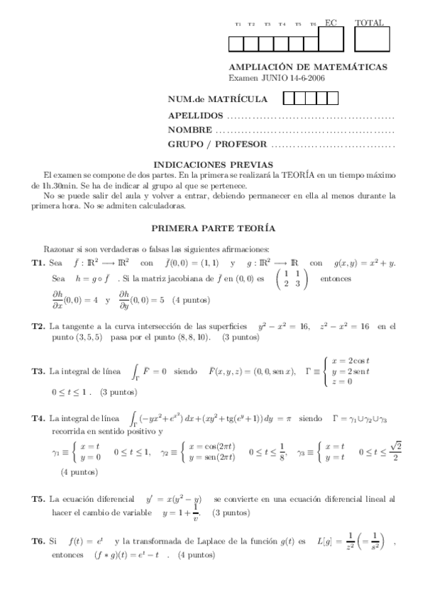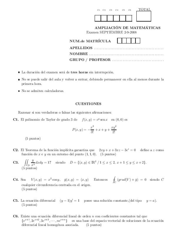 Exámenes Ampliación de Matemáticas