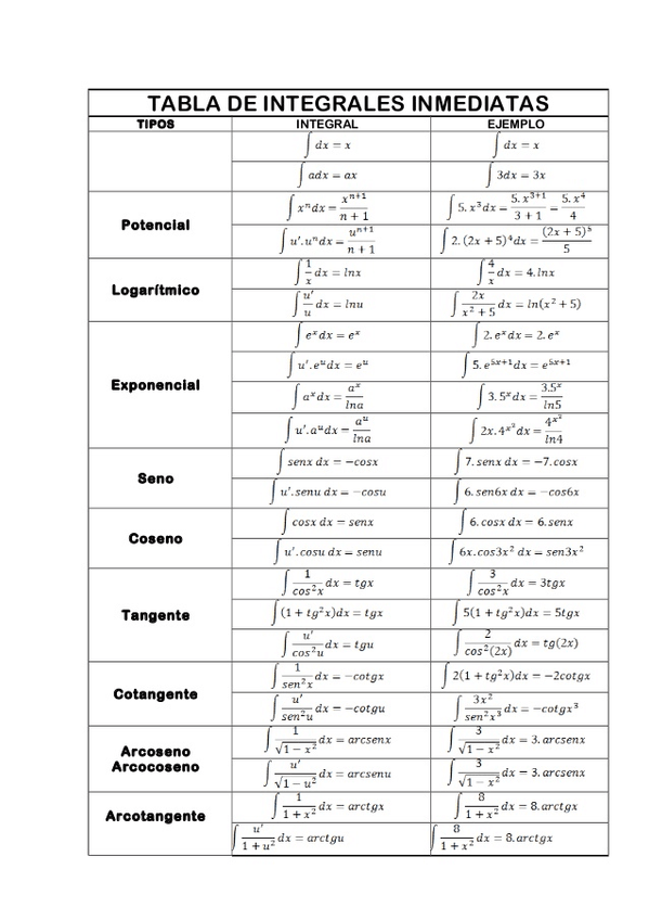 Tablas Integrales y Trigonometría