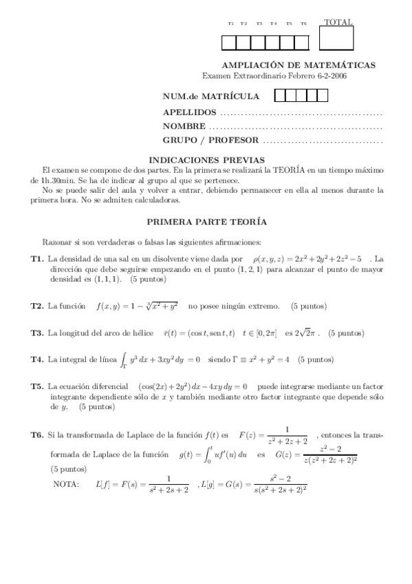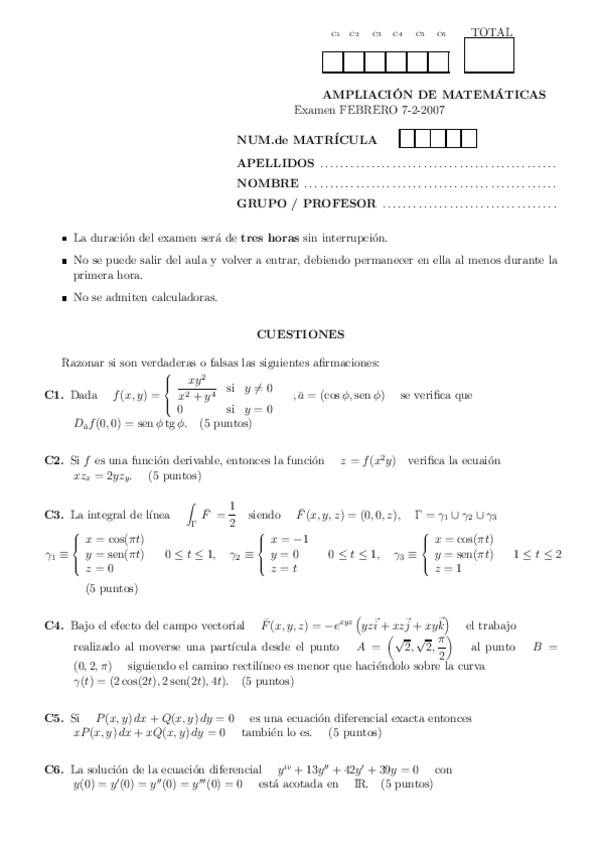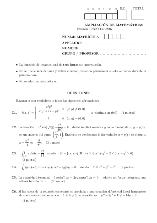 Exámenes 1 Ampliación de Matemáticas