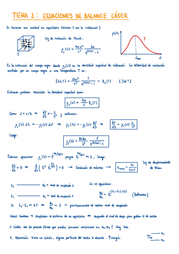 Boletines de ejercicios Bloque 1: Física del Láser