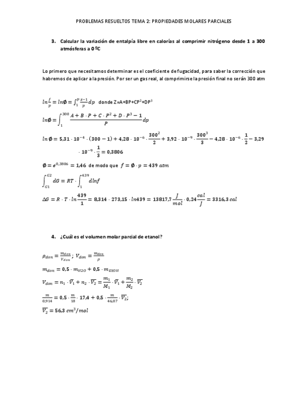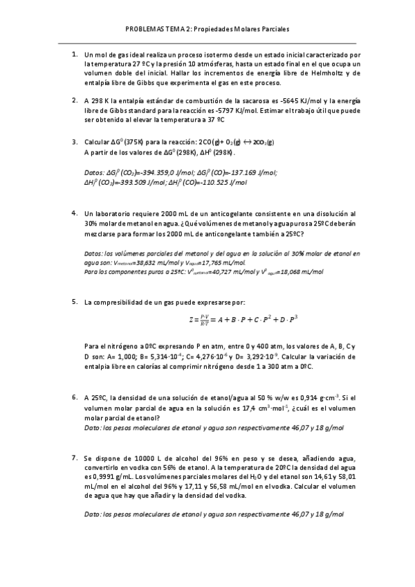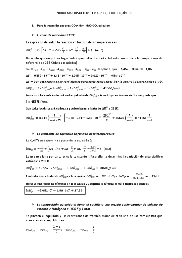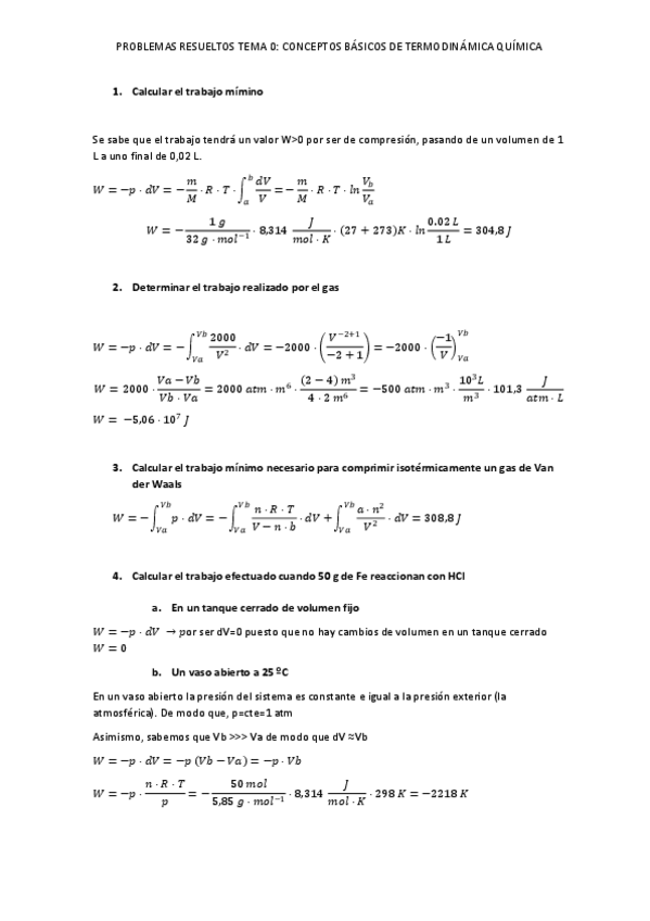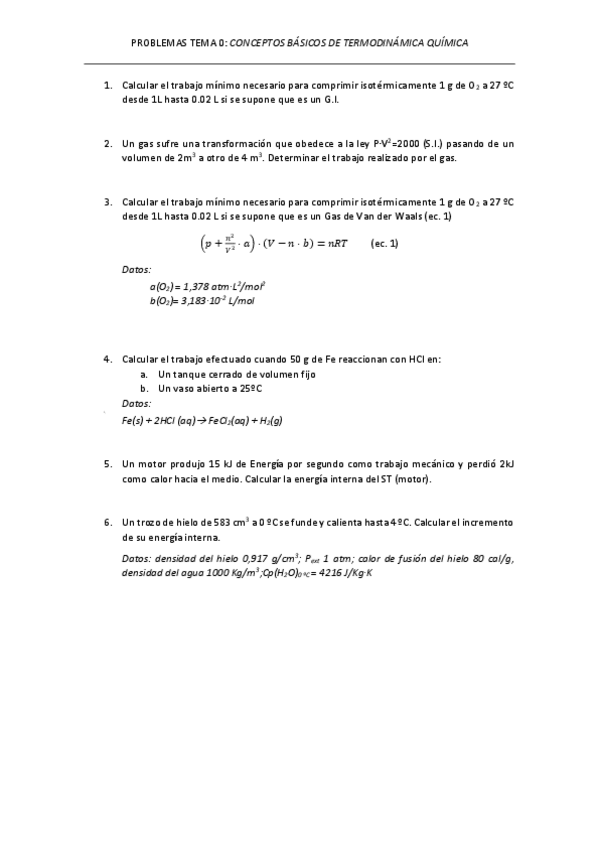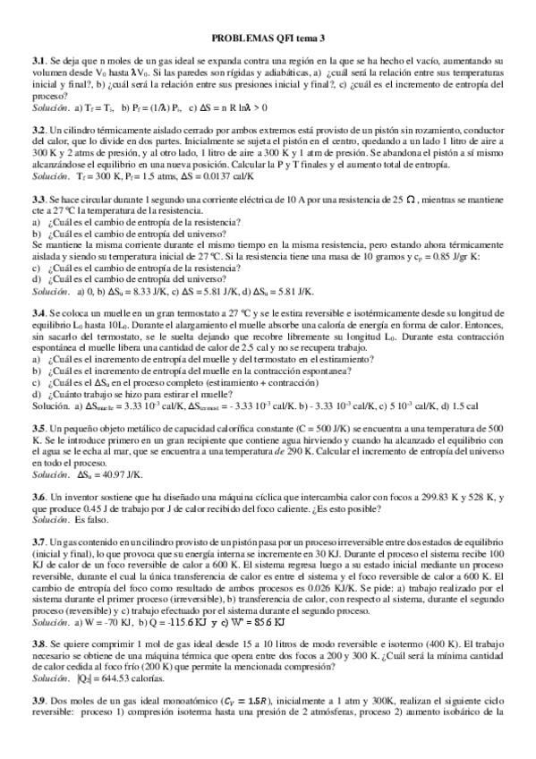 Ejercicios con enunciado y resueltos. Quimica Física I