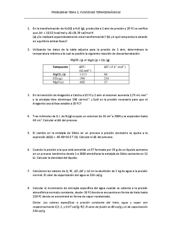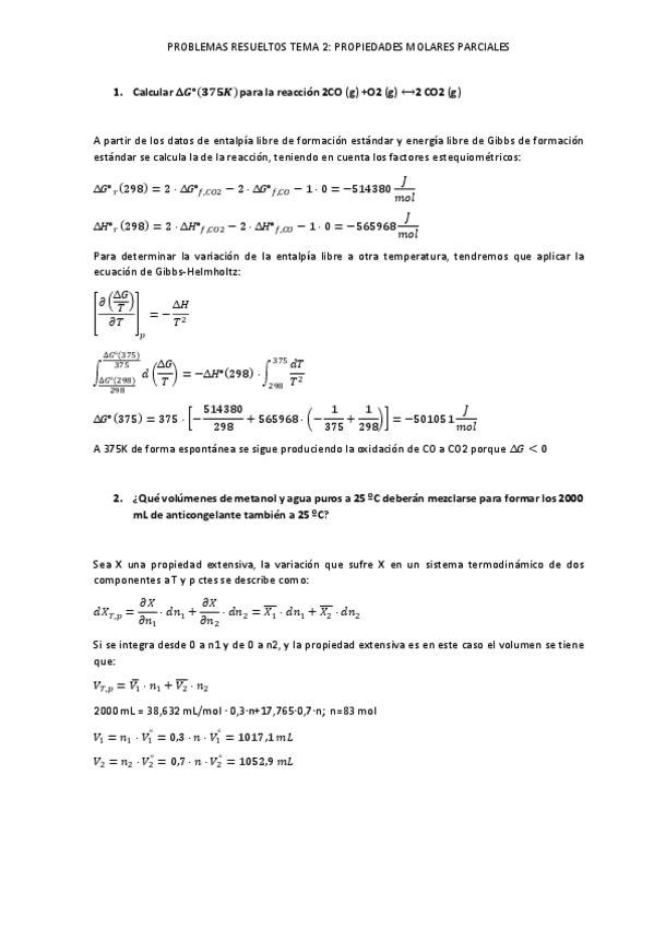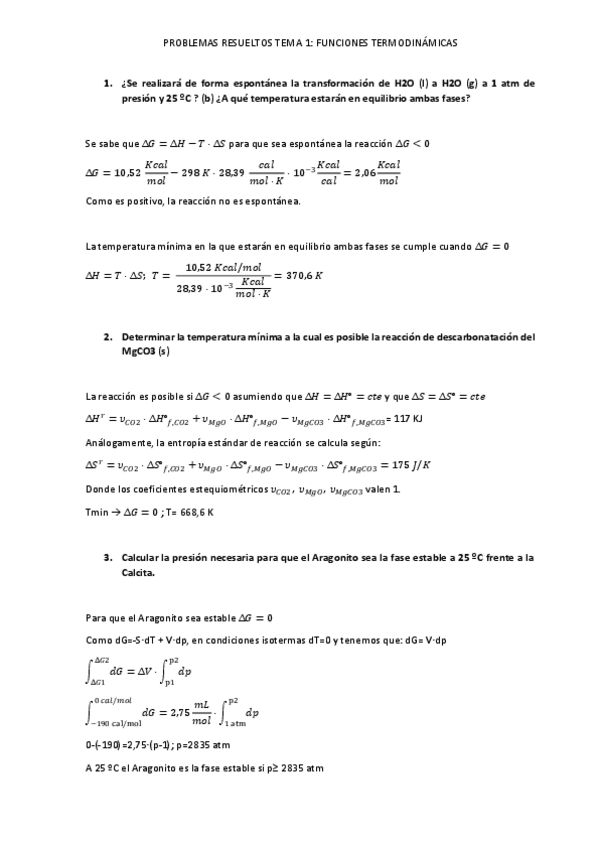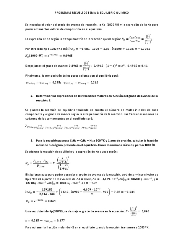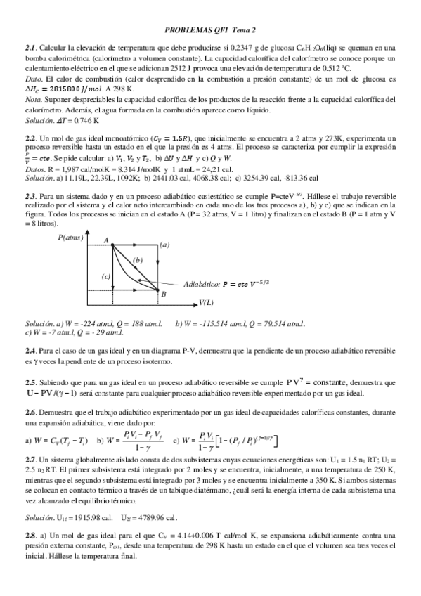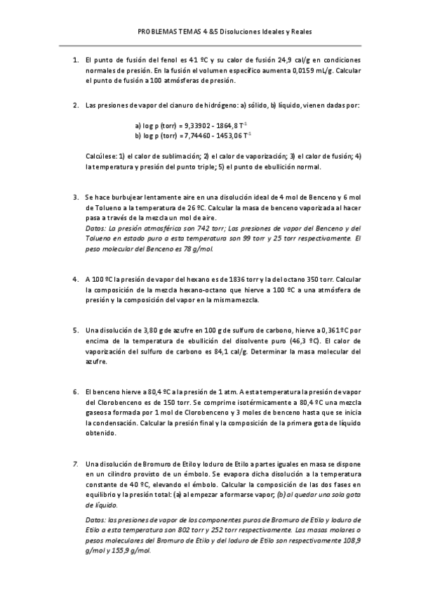 Ejercicios con enunciado y resueltos. Quimica Física I