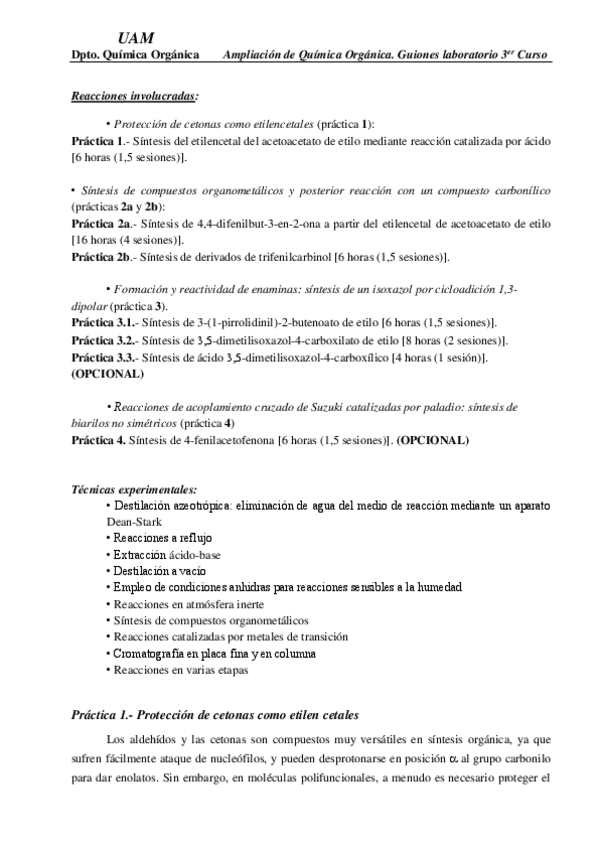 Guion de prácticas con ejercicios resueltos ampliación química orgánica II
