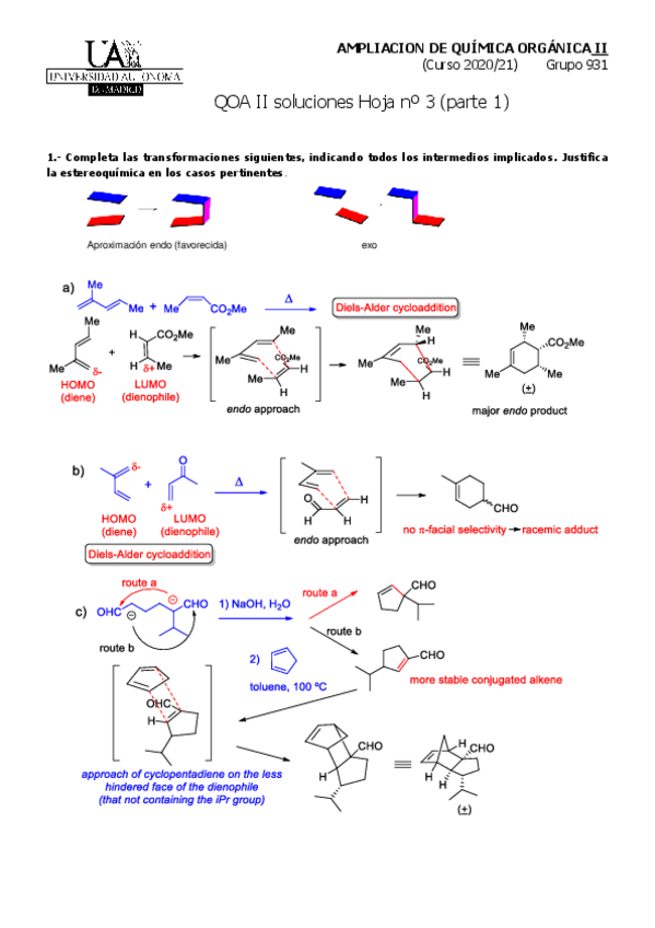 He publicado nuevos ejercicios de 3º Ampliación de Química Orgánica II: Hoja-3.1Soluciones-Diels-Alder.pdf