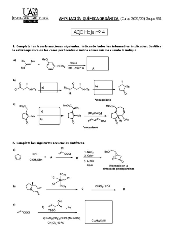 He publicado nuevos examenes de 3º Ampliación de Química Orgánica II: Examen-final-2022.pdf