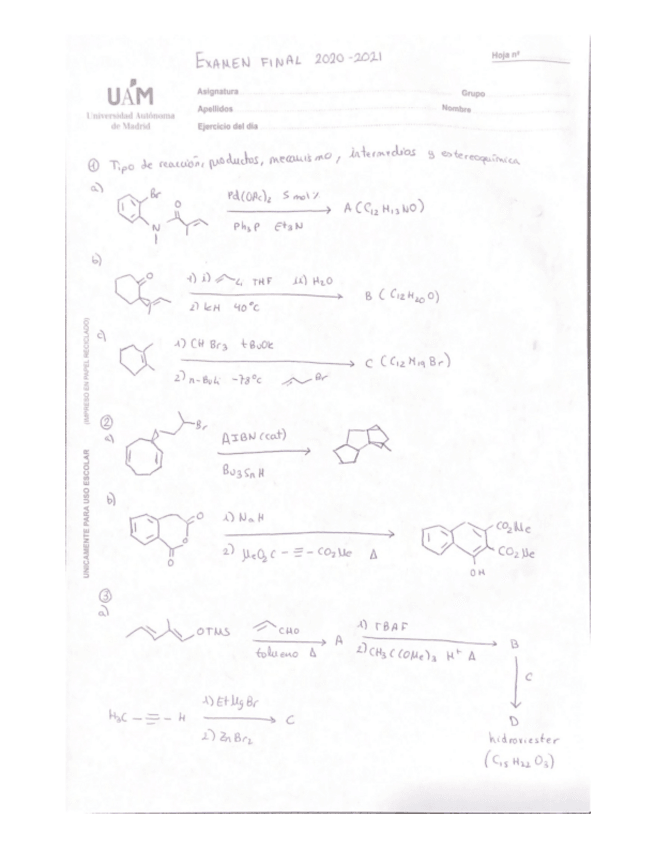 He publicado nuevos examenes de 3º Ampliación de Química Orgánica II: Examen-final-2020-21.pdf