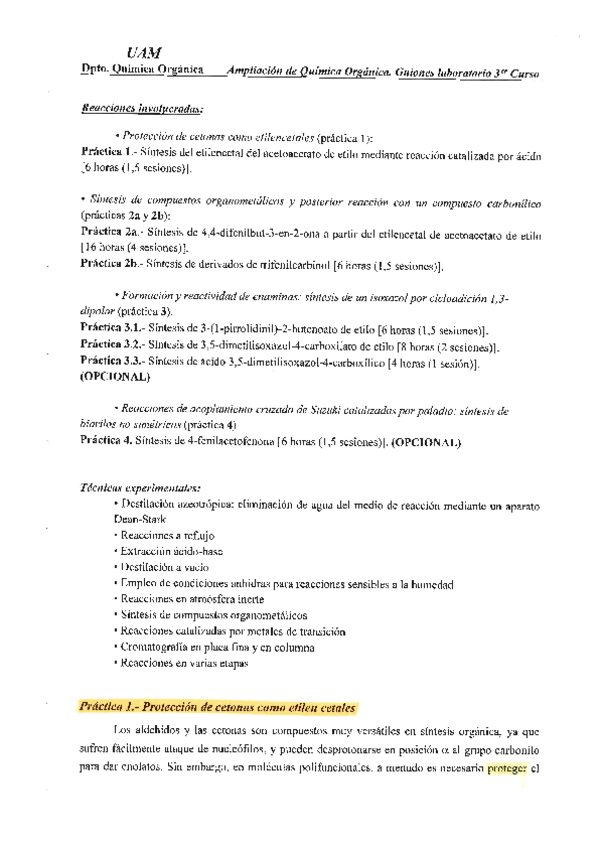 Guion de prácticas con ejercicios resueltos ampliación química orgánica II