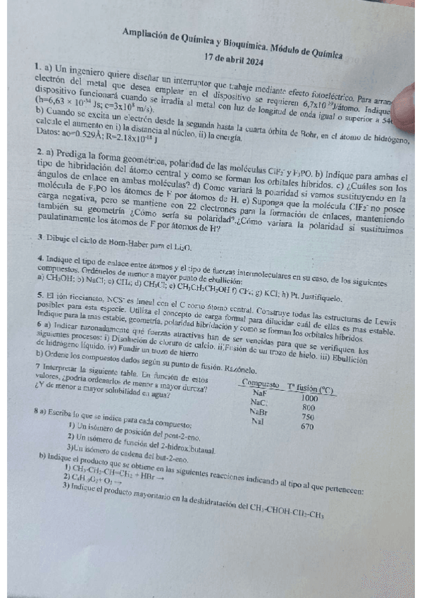He publicado nuevos examenes de 1º Ampliación de Química y Bioquímica: Examen Parcial 25 abril 2018 Ampliación de Química.jpg