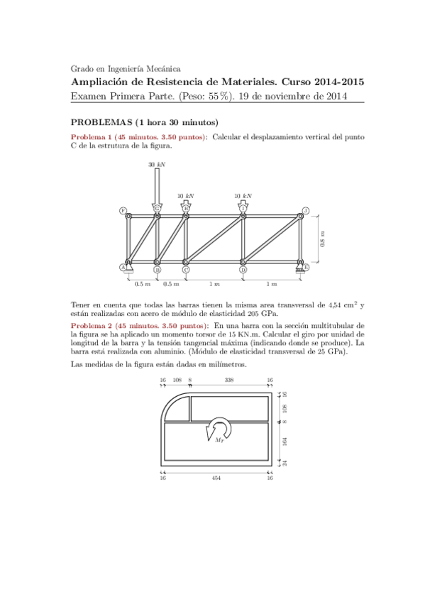He publicado nuevos examenes de 3º Ampliación de Resistencia de Materiales: 20152016parcial.pdf