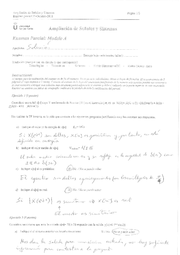 He publicado nuevos examenes de 2º Ampliación de Señales y Sistemas: Parcial Octubre 2015