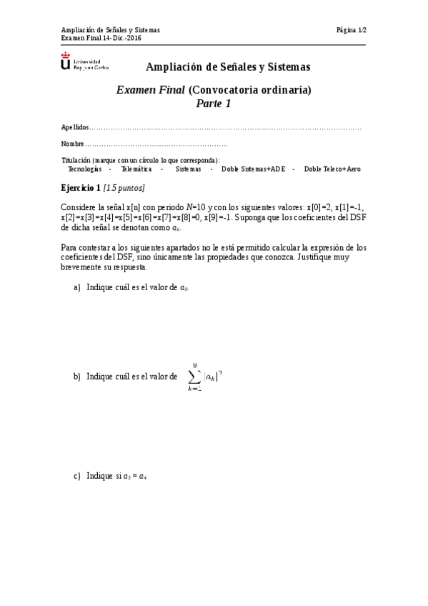He publicado nuevos examenes de 2º Ampliación de Señales y Sistemas: FinalDic15.pdf