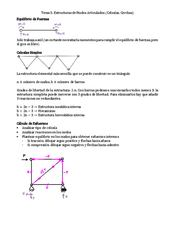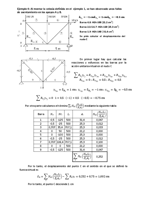 He publicado nuevos ejercicios de 3º Ampliación de Teoría de Estructuras: Ejemplo 4 Celosia isostatica Desplazamiento.pdf