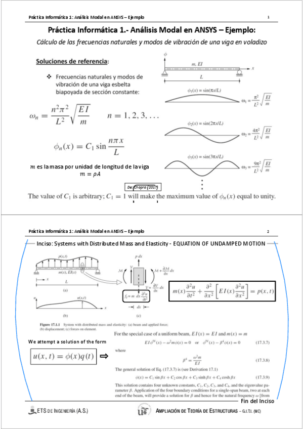 He publicado nuevos apuntes de 3º Ampliación de Teoría de Estructuras: Modelo-calculo-dinamico-estructuras-barras.pdf