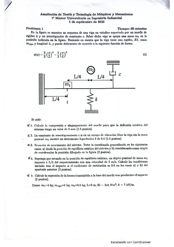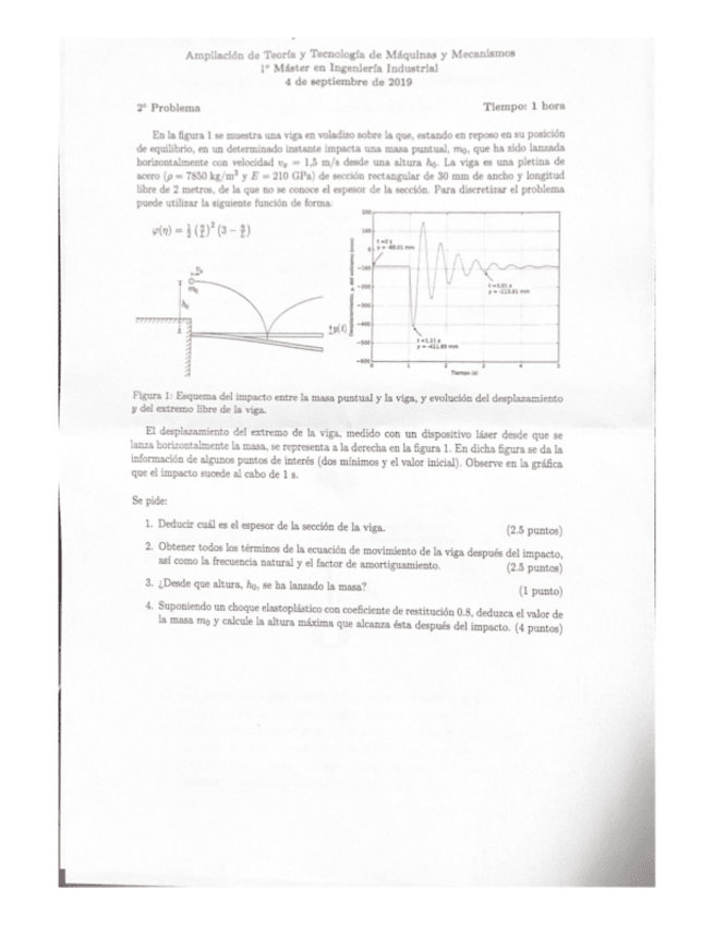 He publicado nuevos examenes de 1º Ampliación de Teoría y Tecnología de Máquinas y Mecanismos: Examen-vibraciones.pdf