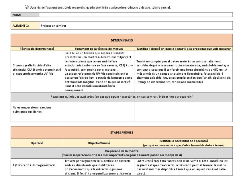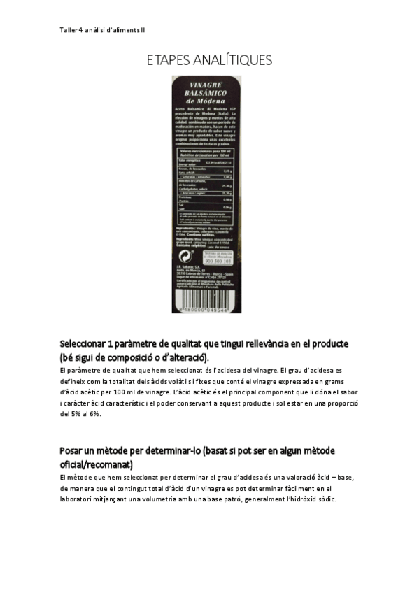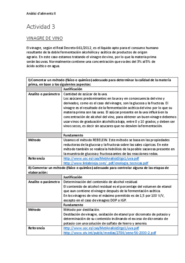 Anàlisi D'aliments Ii