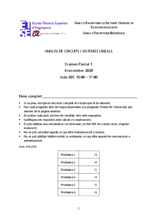 He publicado nuevos examenes de 2º Anàlisi de Circuits i Sistemes Lineals: ACSL