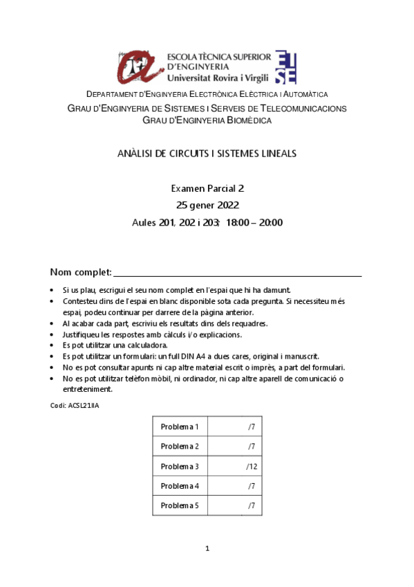He publicado nuevos examenes de 2º Anàlisi de Circuits i Sistemes Lineals: Examen-ACSL21II.pdf