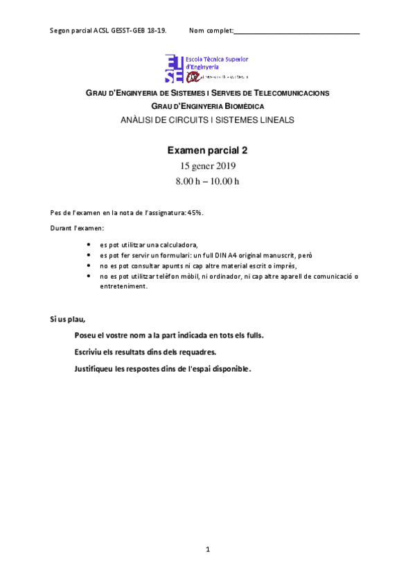 He publicado nuevos examenes de 2º Anàlisi de Circuits i Sistemes Lineals: Examen-ACSL18II.pdf
